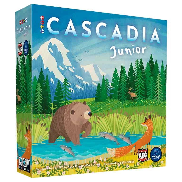 Cascadia: Junior Opdag naturen og dyrelivet i børnehøjde Tag med på eventyr i det nordamerikanske vildnis i Cascadia: Junior! Her skal børn bygge deres egen natur med floder, skove, bjerge og en mangfoldighed af dyr alt imens de lærer at tænke strategis