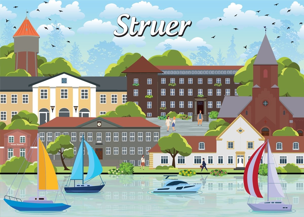 I vores puslespilsserie skildres Struers unikke sammensmeltning af lyd, kultur og natur, med brikker, der sammen danner et billede af denne dynamiske by. Inde i æsken finder du en kompakt plakat, der viser puslespillets design, hvilket kan være en hjælp,