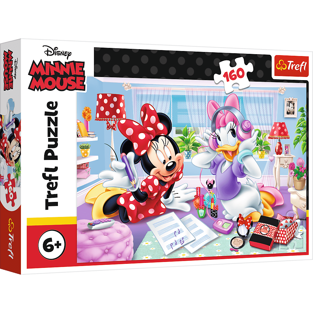 Puslespil med 160 brikker. Motiv af Minnie Mouse og Andersine. Anbefalet fra 6 år. 28 x 41 cm.