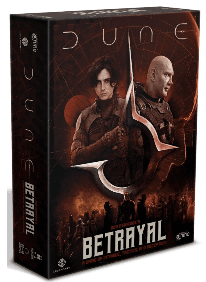 I det sociale deduktionsspil Dune: Betrayal påtager spillerne sig identiteten af en af de ikoniske karakterer i Dune, der hver repræsenterer en særskilt rolle inden for de fraktioner, der kæmper om kontrol på Dune. Dit mål er at lære dine fjenders identit