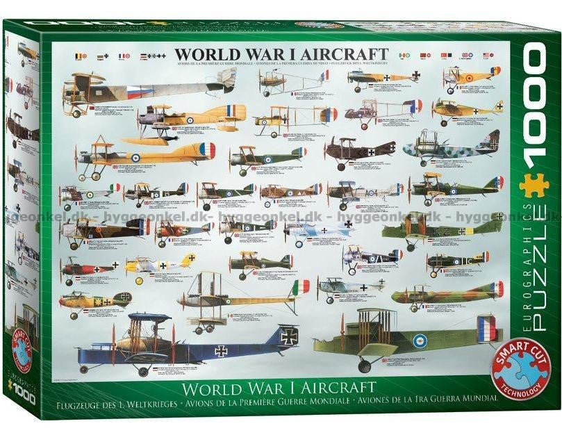 Oplev den spændende æra af luftkamp med Fly fra 1. Verdenskrig puslespillet! Brikkerne måler ca. 3,4 cm², en smule større end traditionelle 1000-brikkers puslespil. SmartCut-asymmetriske brikker giver en unik udfordring med varierende størrelser og former