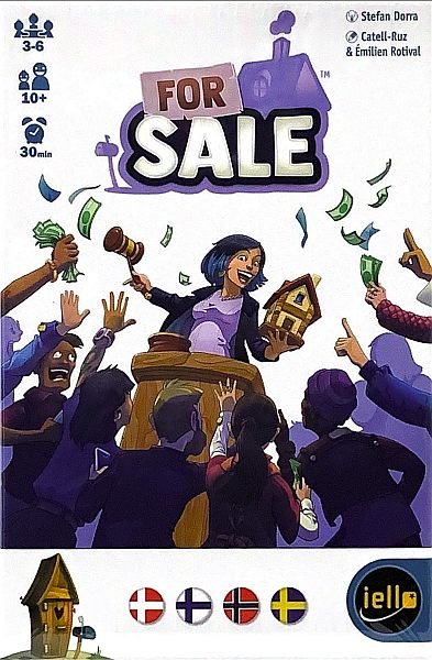 For Sale – Spillet om rigdom og ejendom For Sale er et hurtigt og sjovt spil om køb og salg af fast ejendom. I løbet af spillets to forskellige faser spiller spillerne først bud på flere bygninger, og efter at alle bygninger er købt, så sælges bygningerne