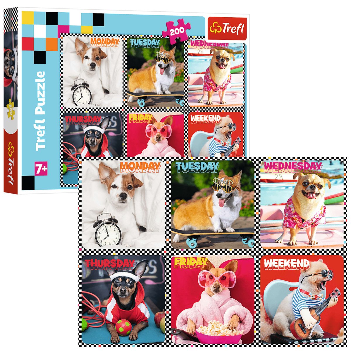 Trefl puslespil med motiv af ef hund for hver dag i ugen. 48 x 34 cm.