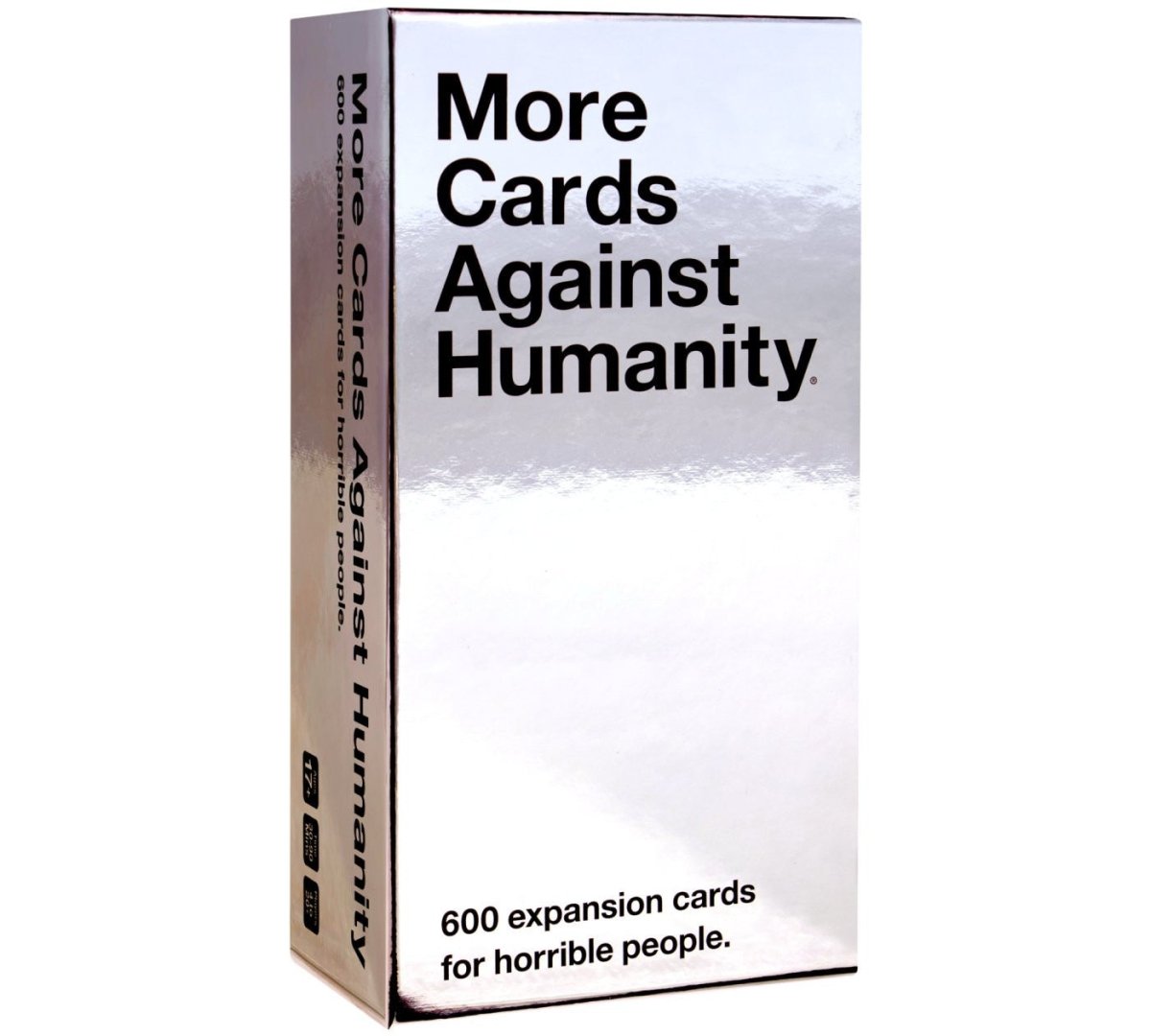Flere kort. Mere kaos. Samme dårlige smag More Cards Against Humanity er den ultimative udvidelse til dig, der bare vil have flere kort. Mange flere kort. I alt får du 600 nye kort, som øjeblikkeligt fordobler variationen, tempoet og det moralske forfald