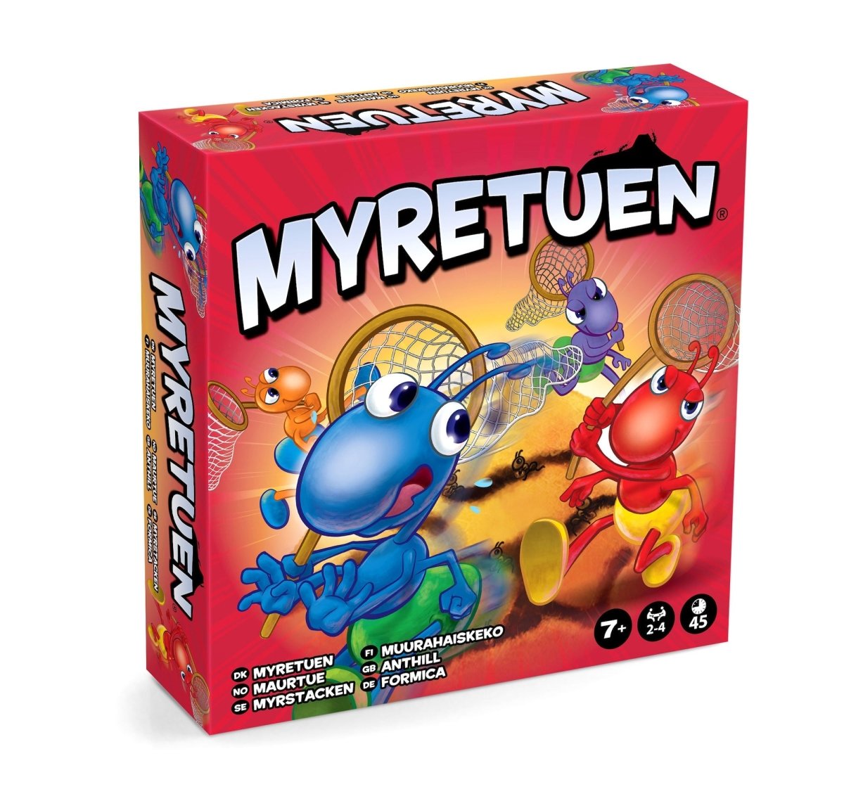 Myretuen – For hele familien Spillet gælder om at få samlet sin myredronning som den første spiller. Du skal fange dine modstanderes myrer, så du kan få samlet puslespillet med din egen myredronning og dermed vinde spillet! Men I skal passe på… Det er n