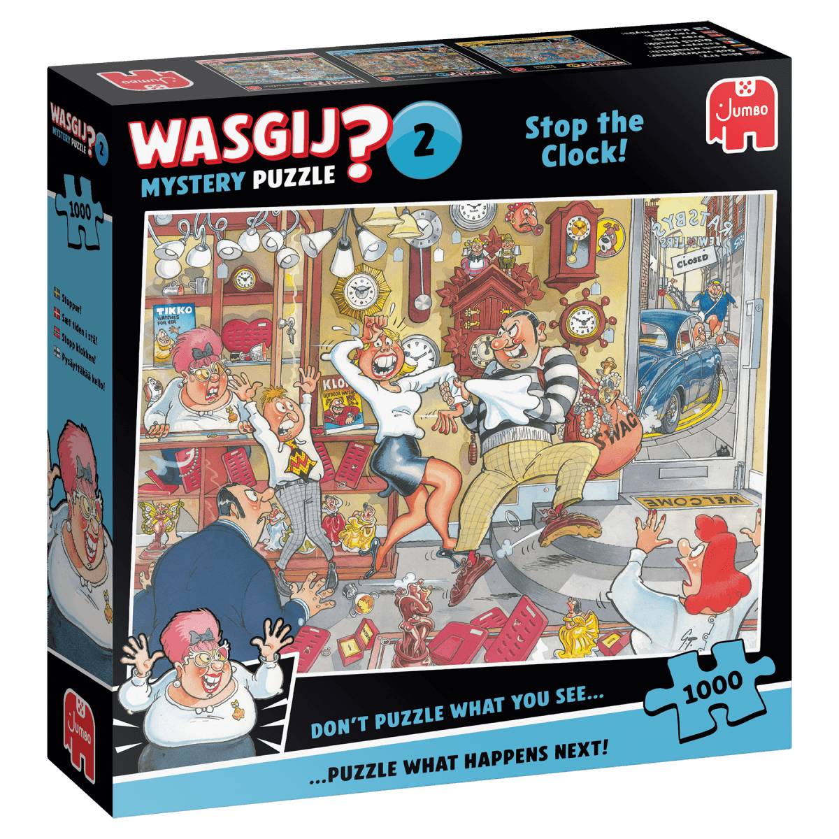 Der er vist noget, der ikke helt går efter planen i urmagerens butik! Et røveri er i gang, kunderne er i chok, og uret tikker derudad men hvad sker der i det næste øjeblik? Det er præcis det, du skal finde ud af. I dette Wasgij Mystery-puslespil skal du