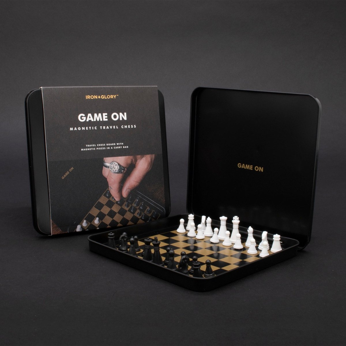 Magnetisk rejseudgave af skak fra Iron & Glory er den perfekte kombination af klassisk strategi og moderne design. Det elegante rejse-sæt indeholder magnetiske skakbrikker, en stilfuld metalæske der fungerer som spillebræt, og en blød velvet-pose til brik