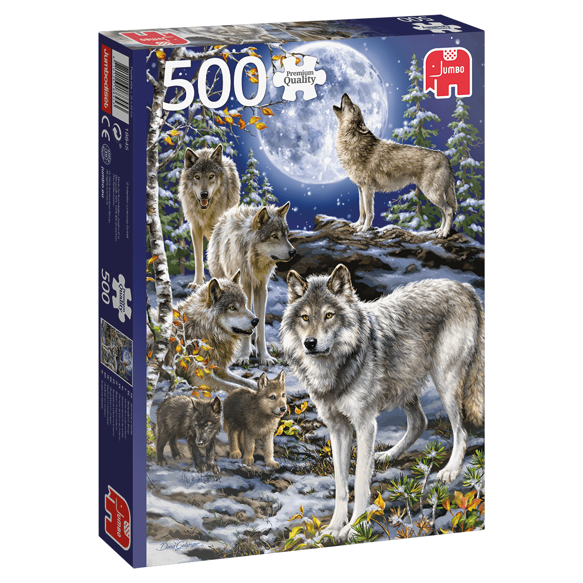 Dansk titel: Ulve kobbel om vinteren Antal brikker: 500 Producent: Jumbo Størrelse samlet: 49×35 cm